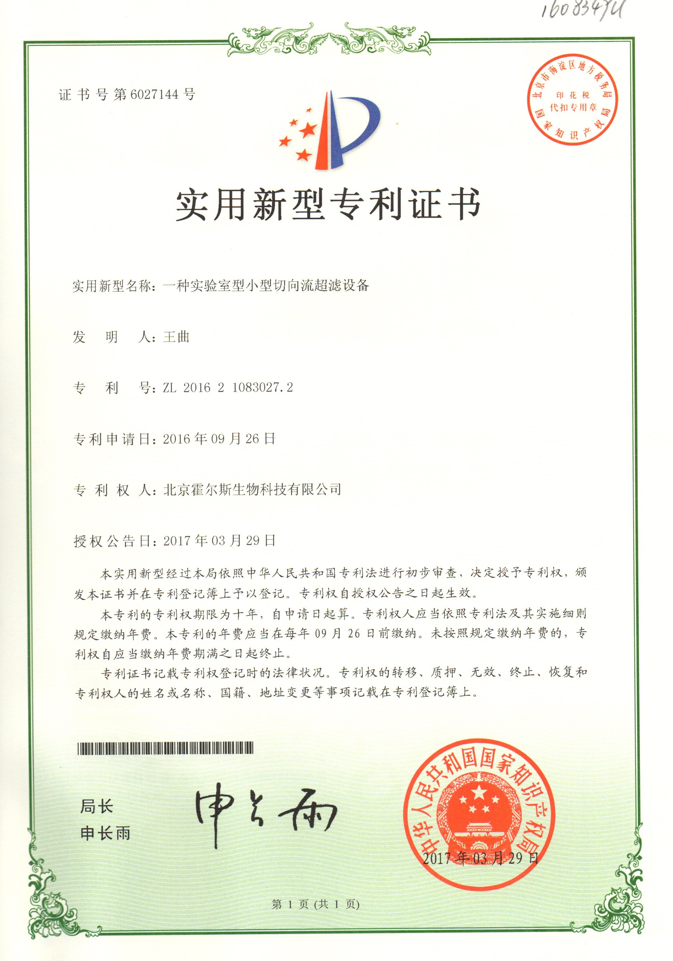 您现在阅读的文章是:XKTY.COM获得切向流过滤设备的专利。